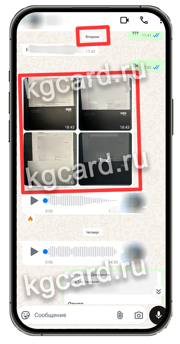 4.3.1. Заказчик оформляет заявку на оказание консультационно-информационных услуг по средствам направления в телеграмм Исполнителя @kgcardbot , либо через системы обмена электронными сообщениями (web.whatsapp.com или web.telegram.com) документы Заказчика, которые необходимы для оказания вышеуказанных услуг. Информацию о требуемых для оказания услуг документах Заказчик получает от Исполнителя до составления и направления заявки Исполнителю.